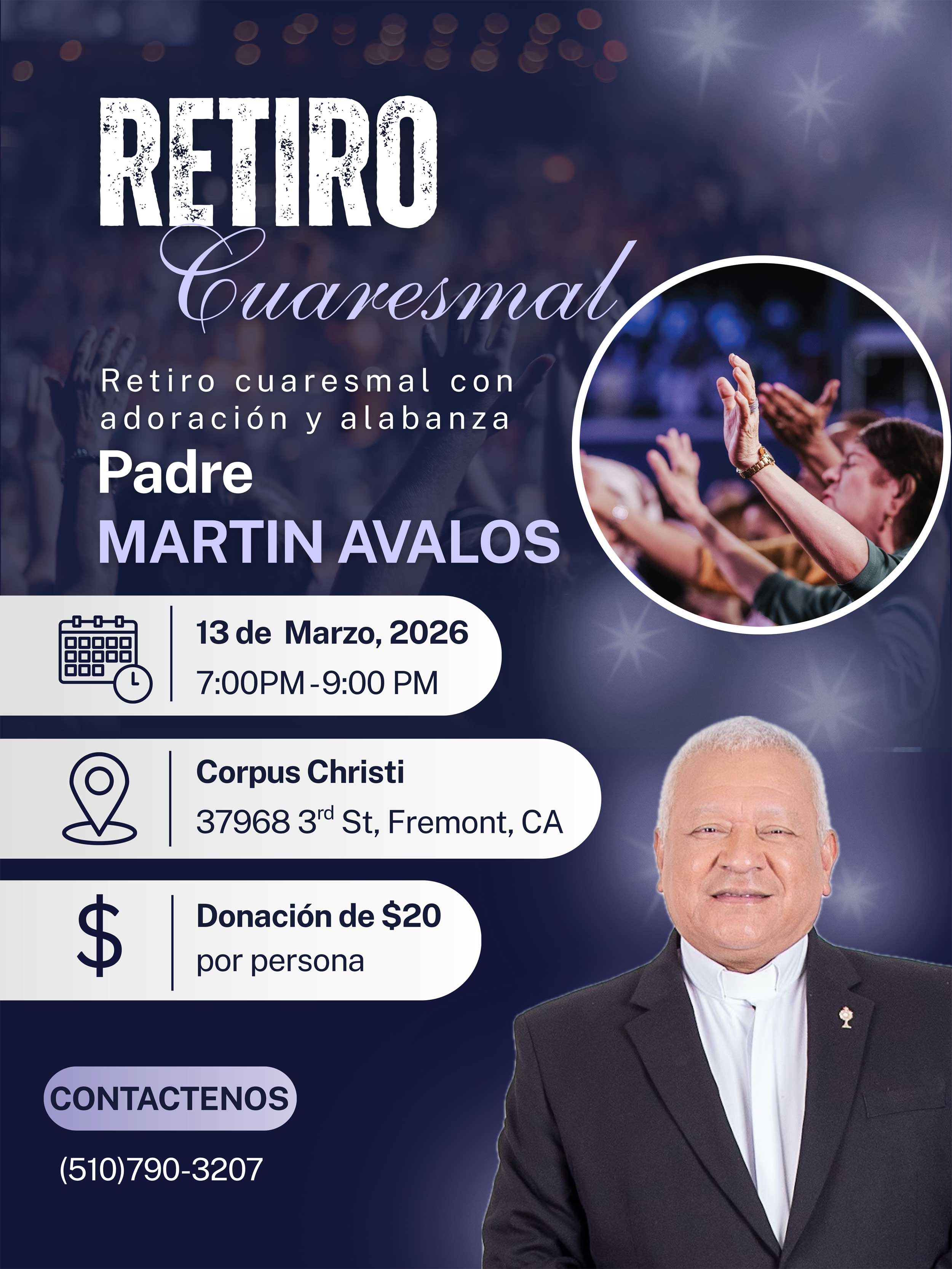 Date Posted: Feb 26, 2026 Póster del Retiro Cuaresmal (2026) Retiro Cuaresmalcon adoración y alabanza13 de Marzo, 20267:00PM-9:00PM Corpus Christi Parish†Descarga el cartel descarga